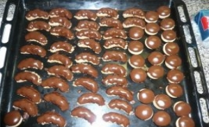 Trubičkou dáme na rohlíčky krém a namočíme do čokolády.